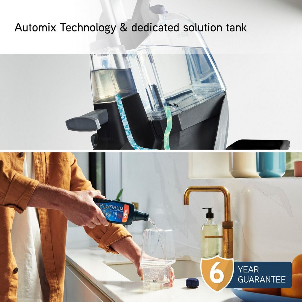 Additional Information SpinScrub™ Technology tackles tough stains, delivering a deep clean Extra large tank for a longer clean Quick dry time* Above floor cleaning for a complete home clean Easy post-use maintenance Automix Technology & dedicated solution tank Multiple cleaning modes Antimicrobial Treatment Easy to empty dirty water tank Carpets restored and revived Tank full indicator