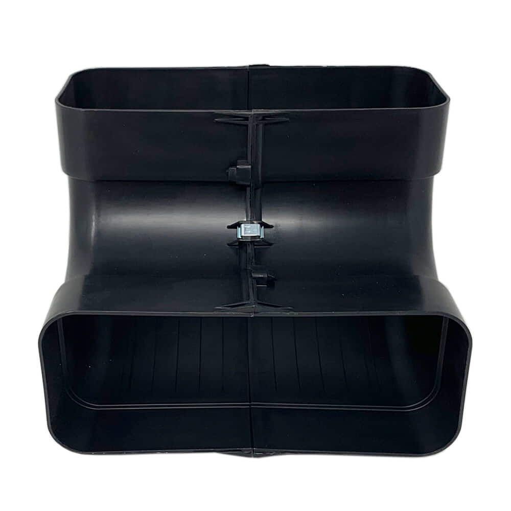 Original Elica accessory for NikolaTesla aspirating hobs and compatible cooker hoods. Allows the creation of a 90° curve between two ducts with inlet and outlet dimensions of 227 x 94 mm. Dimensions: 220 x 280 x 230 mm.