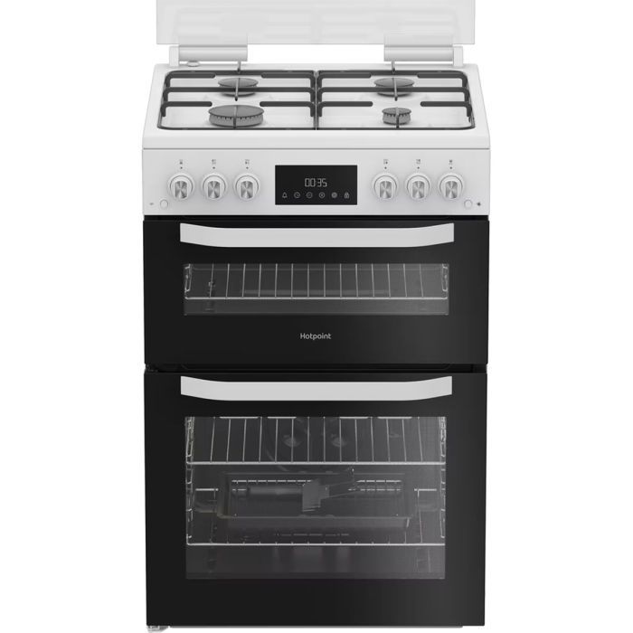 Hotpoint HTG6GDCW Twin Cavity Glass Lid Gas Cooker White