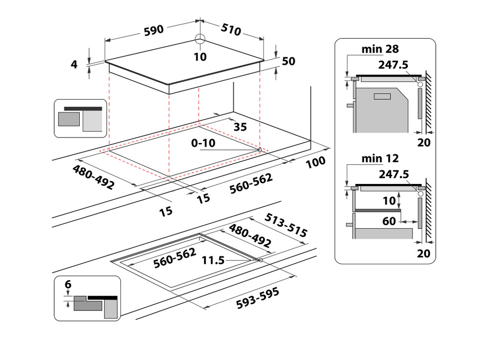 - Std Size Hob 4 Zones-Flexible