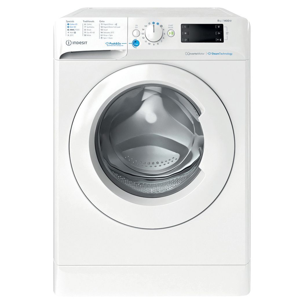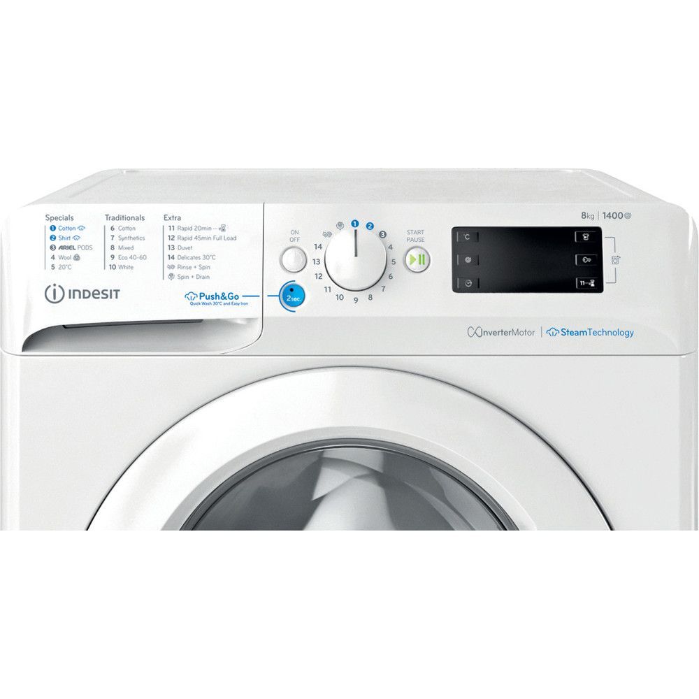 Indesit BWE81496XWVUK Push&Go Steam Washing Machine 8Kg 1400spin - White - A Rated