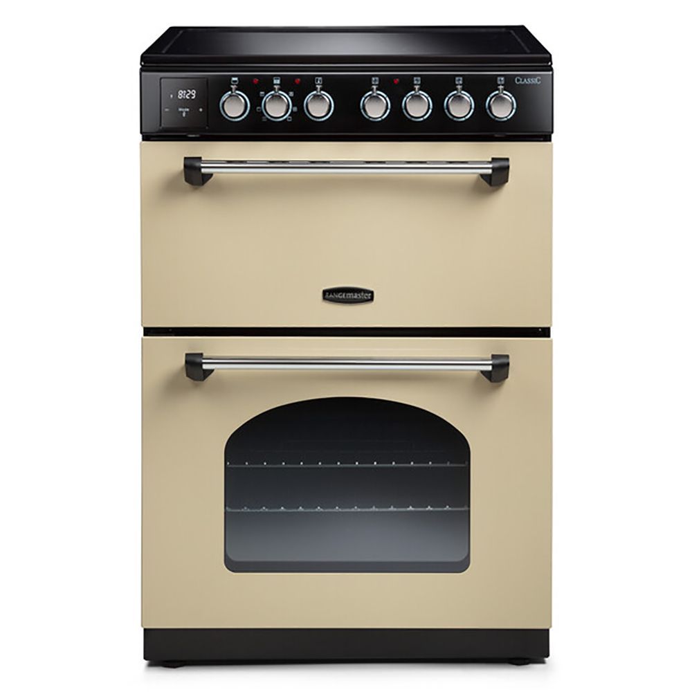 | Product Name : | Rangemaster CLA60ECCR/C Classic Freestanding 60cm Ceramic Cooker in Cream and Chrome A Rated |