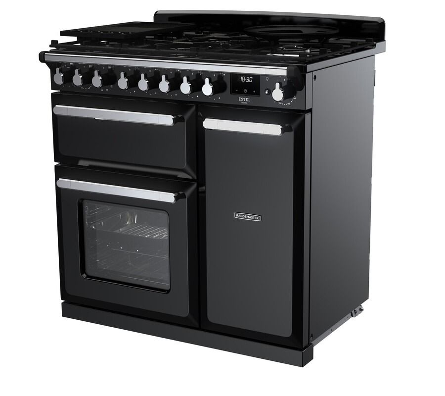 Product Name : | Rangemaster ESDL90DFPGBL/CM1 90cm Wide Dual Fuel Range Cooker - Gloss Black / Chrome - A Rated |