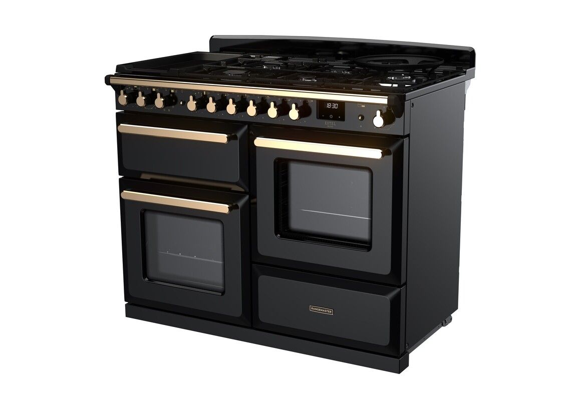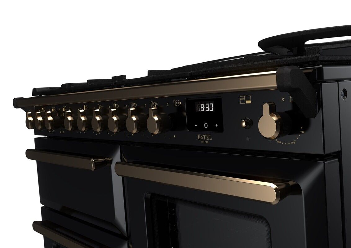 Rangemaster ESDLB110DFPGBL/AB1 110cm Dual Fuel Range Cooker BC Gloss Black /Antique Brass A-Rated