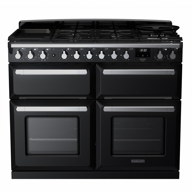 Rangemaster ESDLB110DFPGBL/CM1 110cm Dual Fuel Range Cooker BC Gloss Black /Chrome A-Rated