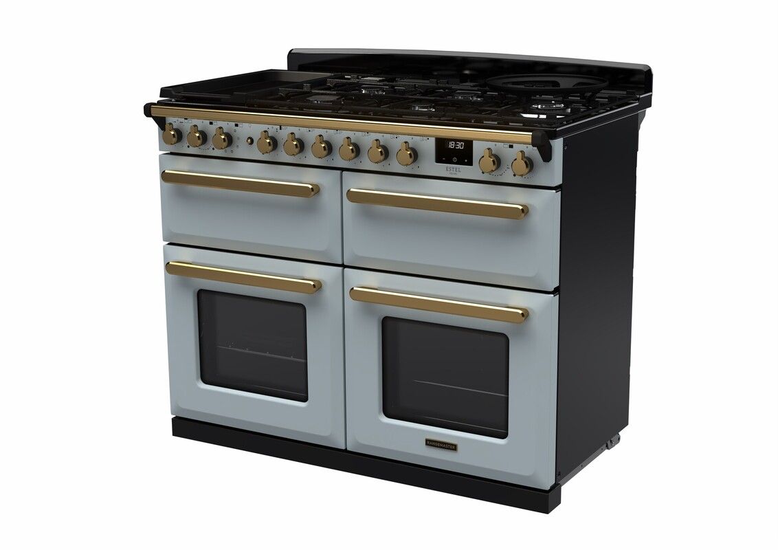Upgrade your kitchen with the Rangemaster ESDLB110DFPMSB/AB1 18148 ESTEL DLX BC 110 DF MSTY BL AB GB/IE. This stylish and efficient dual fuel range cooker features multiple cooking functions and a sleek design, perfect for any modern home.