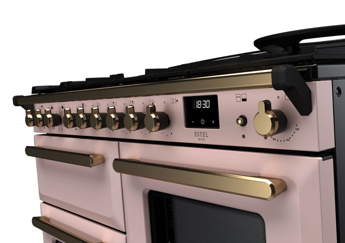 Product Name : | Rangemaster ESDLO110DFPPPK/AB1 110cm Dual Fuel Range Cooker OC Pale Pink /Antique Brass A-Rated |