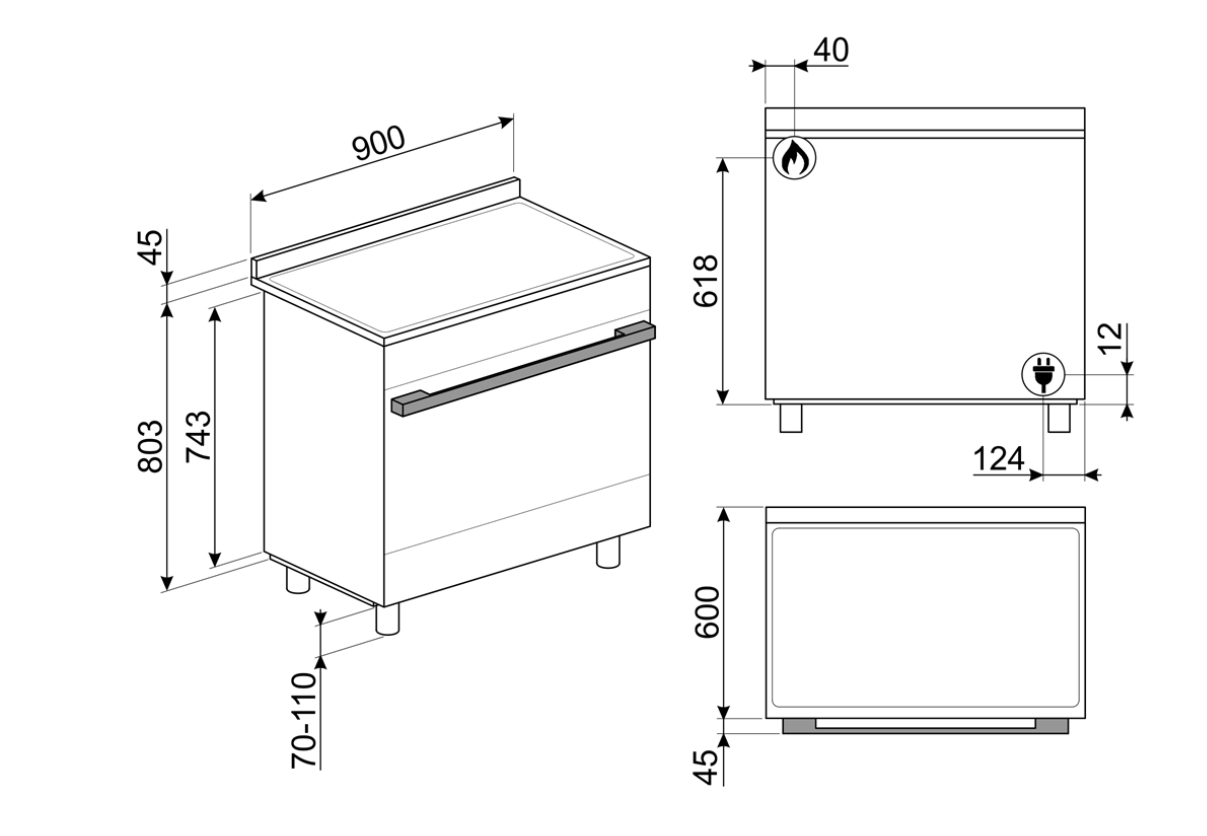 Range Hob type : | Gas Hob Six Burners with cast iron pan supports |